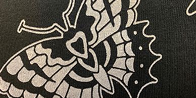Our tone-on-tone printing is created by a special ink mixture we have developed that slightly darkens the color of the garment while having almost no texture. It works on most materials and colors of garments.